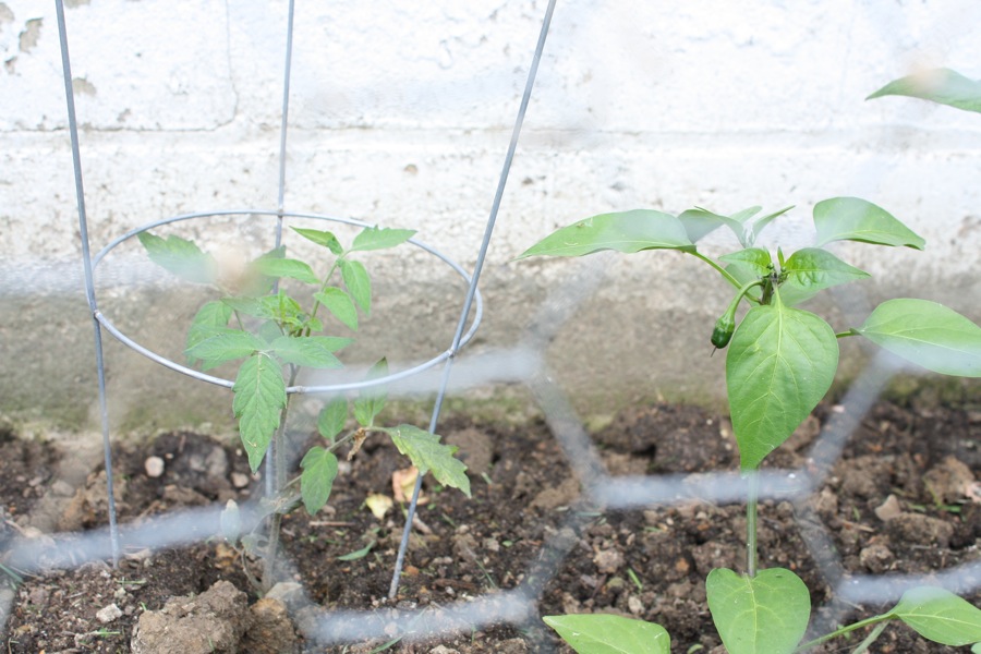 The tomatoes are accompanied by some mammoth cayenne peppers and lime basil (which was a successful self-start inside, if that helps me redeem by green thumb). I’m already enjoying watching some of the itsy-bitsy peppers take form.