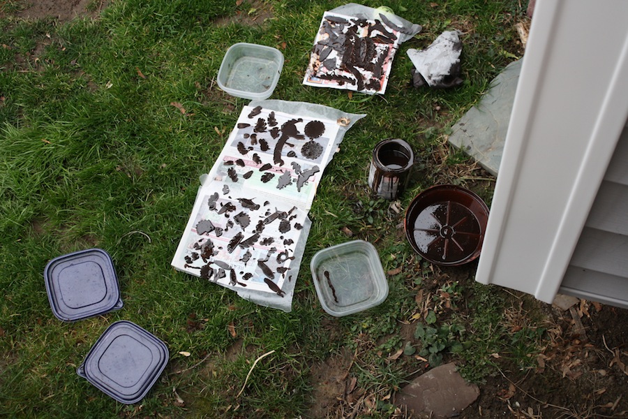 There was nothing neat and tidy about this method, because it was really like tossing a salad with dressing that stained everything around you, everything you were wearing, and your cuticles indefinitely. I pretty quickly moved the whole operation to the backyard and did my best to not lose any pieces in the grass.