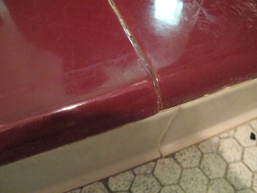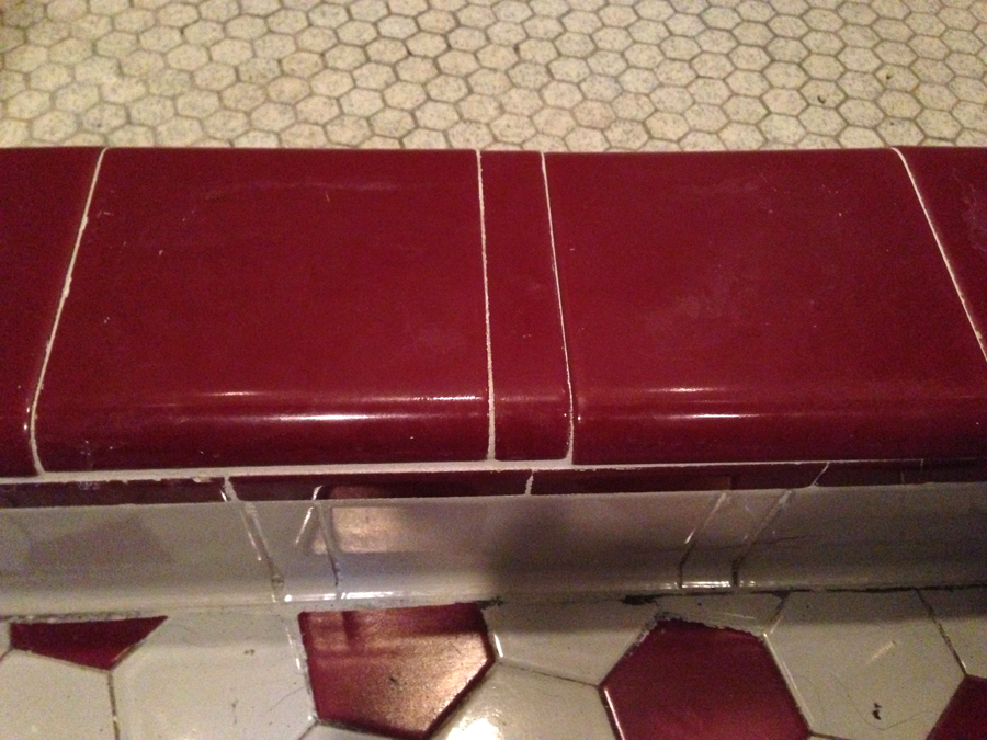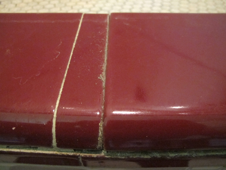 The fact that the tiles weren’t sitting solidly anymore was part of the issue; it may be the biggest reason for there being no grout between the tiles, having washed away after years of the tiles loosening in place.