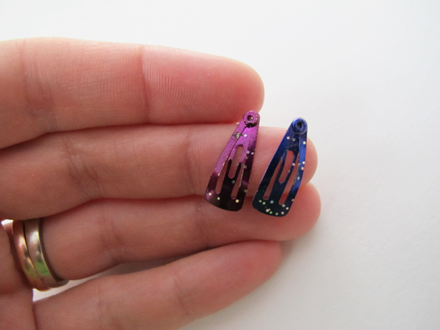 Attach a hair clip to the bottom of the bow using hot glue. A heavy Bobby pin might work well, but I had some child-sized micro clips that worked perfectly for something of this scale.